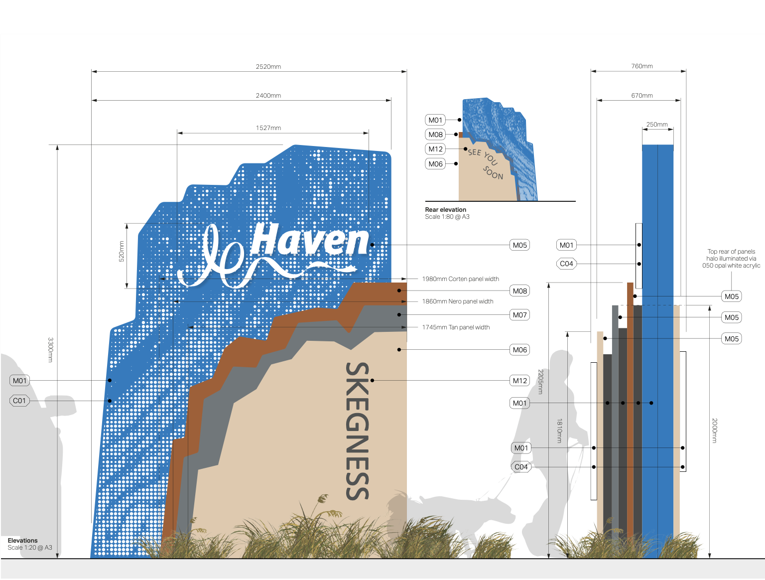 Their layered forms are inspired by the strata of the UK coastline. Grounding each park in its location while creating a distinctive, ownable silhouette.